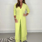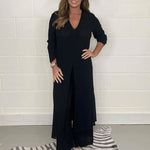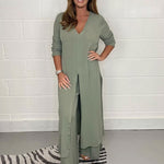 Imaginez-vous entrant dans une salle de réunion ou à une soirée, vêtue de ce tailleur. Le pantalon à coupe large et la blouse à coupe slim s'associent pour créer une silhouette féminine. Chaque mouvement que vous faites respire la confiance et l'aisance.
